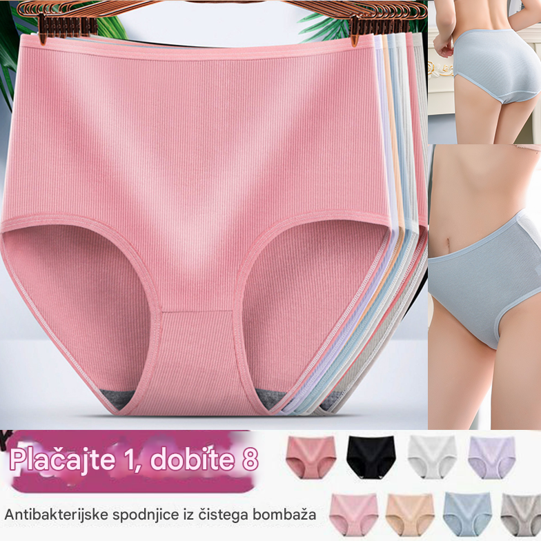 💥【🔥1 komplet 8 kosov】Žensko higroskopsko antibakterijsko spodnje perilo z visokim pasom